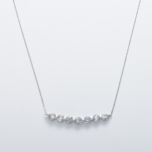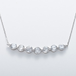 ダイヤモンドのネックレスでも、ちょっと変り種のものをお探しのあなた!な、なんと7石、合計1ctものダイヤモンドが連なった、ゴージャスすぎる1本をご紹介!ひと粒でもしっかりした存在感と輝きのダイヤモンドがこんなにも味わえるなんて夢みたいです。実際手にとってみると、本当にまぶしい…。横並びにすることでダイヤモンドの面積がグッと広がったように見えて、ひとつひとつが実際より大きく感じる♪デコルテに自然な湾曲感でフィットします。