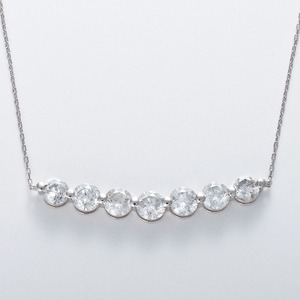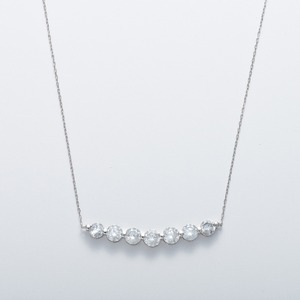ダイヤモンドのネックレスでも、ちょっと変り種のものをお探しのあなた!な、なんと7石、合計1.5ctものダイヤモンドが連なった、ゴージャスすぎる1本をご紹介!ひと粒でもしっかりした存在感と輝きのダイヤモンドがこんなにも味わえるなんて夢みたいです。実際手にとってみると、本当にまぶしい…。横並びにすることでダイヤモンドの面積がグッと広がったように見えて、ひとつひとつが実際より大きく感じる♪デコルテに自然な湾曲感でフィットします。