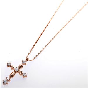 【鑑別書付】K18ピンクゴールド 天然ダイヤネックレス ダイヤモンドペンダント/ネックレス0.10ct クロスモチーフ