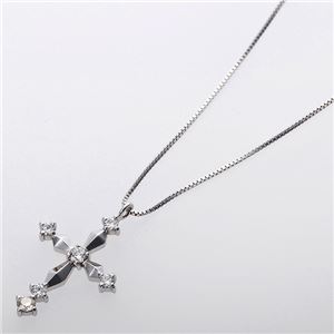 【鑑別書付】K18ホワイトゴールド 天然ダイヤネックレス ダイヤモンドペンダント/ネックレス0.10ct クロスモチーフ