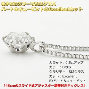 ダイヤモンドペンダント/ネックレス 一粒 プラチナ Pt900 0.5ct ダイヤネックレス 6本爪 Dカラー SI2 Excellent EXハート&キューピット 鑑定書付き