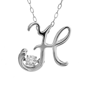 ダンシングストーン K18WG・天然ダイヤモンドシリーズイニシャル「H」ペンダント/ネックレス