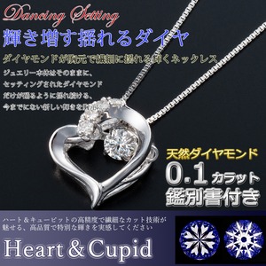 ダイヤモンドペンダント/ネックレス 一粒 K18 ホワイトゴールド 0.1ct ダンシングストーン ダイヤモンドスウィングネックレス 揺れるダイヤが輝きを増す ハートモチーフ 揺れる ダイヤ 鑑別書付き