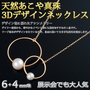 あこや真珠 ネックレス シンプル K10 イエローゴールド パール 本真珠 6mm珠 4mm珠 アシンメトリーデザイン 40cm 長さ調節付き