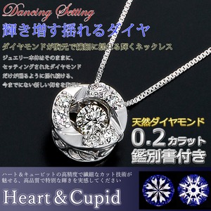 ダイヤモンドペンダント/ネックレス 一粒 K18 ホワイトゴールド 0.2ct ダンシングストーン ダイヤモンドスウィングネックレス 揺れるダイヤが輝きを増す サークルモチーフ 揺れる ダイヤ 鑑別書付き