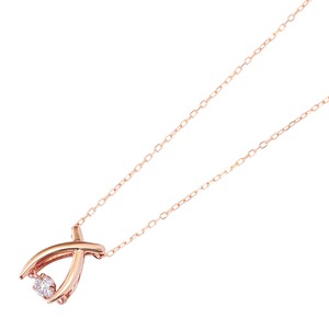 ダイヤモンドペンダント/ネックレス 一粒 K18 ピンクゴールド 0.08ct ダンシングストーン ダイヤモンドスウィングネックレス 揺れるダイヤが輝きを増す☆ リボンモチーフ 揺れる ダイヤ