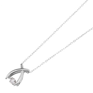 ダイヤモンドペンダント/ネックレス 一粒 K18 ホワイトゴールド 0.08ct ダンシングストーン ダイヤモンドスウィングネックレス 揺れるダイヤが輝きを増す☆ リボンモチーフ 揺れる ダイヤ