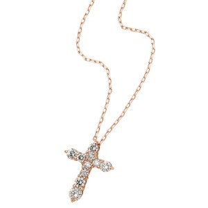 ダイヤモンドペンダント/ネックレス 10粒 0.2ct K18 ピンクゴールド 十字架 クロスモチーフ 人気のクロスダイヤ