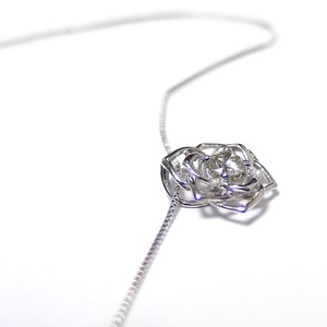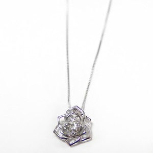 バラの花がモチーフで、中央にダイヤモンドをセッティングした可愛らしい天然ダイヤモンドプチネックレスです。