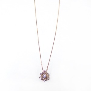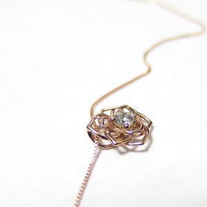 バラの花がモチーフで、中央にダイヤモンドをセッティングした可愛らしい天然ダイヤモンドプチネックレスです。
