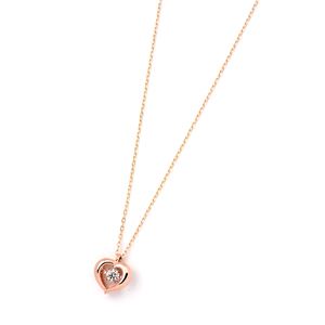 ダイヤモンドペンダント/ネックレス 一粒 K18 ピンクゴールド 0.08ct ダンシングストーン ダイヤモンドスウィングネックレス ハートモチーフ 揺れる ダイヤ 揺れるダイヤが輝きを増す☆