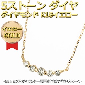 ダイヤモンド ネックレス K18 イエローゴールド 0.3ct 5粒 5ストーン ダイヤネックレス 0.3カラット ペンダント