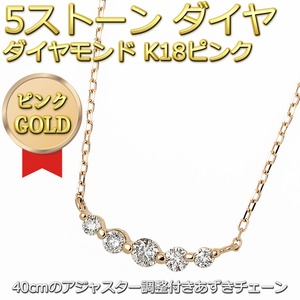 ダイヤモンド ネックレス K18 ピンクゴールド 0.3ct 5粒 5ストーン ダイヤネックレス 0.3カラット ペンダント