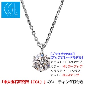 【鑑定書付】 ダイヤモンドペンダント/ネックレス 一粒 プラチナ Pt900 0.1ct ダイヤネックレス 6本爪 Hカラー I1クラス Good 中央宝石研究所ソーティング済み