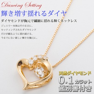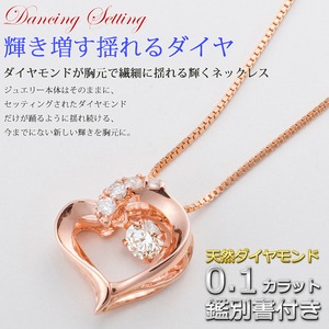 ダイヤモンドペンダント/ネックレス 一粒 K18 ピンクゴールド 0.1ct ダンシングストーン ダイヤモンドスウィングネックレス 揺れるダイヤが輝きを増す ハートモチーフ 揺れる ダイヤ 鑑別書付き