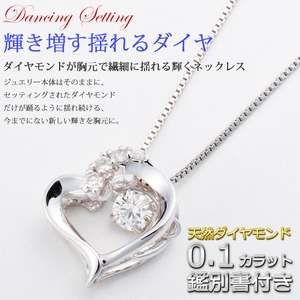 ダイヤモンドペンダント/ネックレス 一粒 K18 ホワイトゴールド 0.1ct ダンシングストーン ダイヤモンドスウィングネックレス 揺れるダイヤが輝きを増す ハートモチーフ 揺れる ダイヤ 鑑別書付き