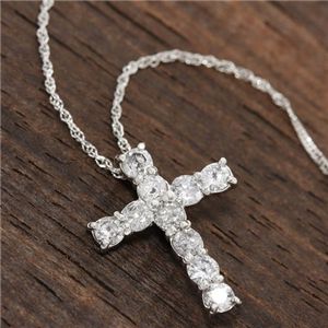 純プラチナ 計0.5ctダイヤモンドクロスペンダント(十字架ネックレス)約42cm