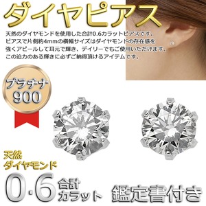 ダイヤモンド ピアス プラチナ Pt900 0.6ct ダイヤピアス Hカラー SI2クラス Good 鑑定書付き