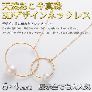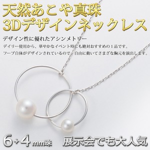 あこや真珠 ネックレス シンプル K10 ホワイトゴールド パール 本真珠 6mm珠 4mm珠 アシンメトリーデザイン 40cm 長さ調節付き