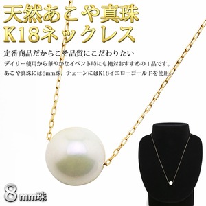 アコヤ真珠 ネックレス パールネックレス K18 イエローゴールド 8mm 8ミリ珠 40cm 長さ調節可能(アジャスター付き) あこや真珠 ペンダント パール 本真珠