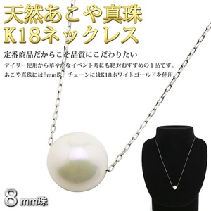 アコヤ真珠 ネックレス パールネックレス K18 ホワイトゴールド 8mm 8ミリ珠 40cm 長さ調節可能(アジャスター付き) あこや真珠 ペンダント パール 本真珠