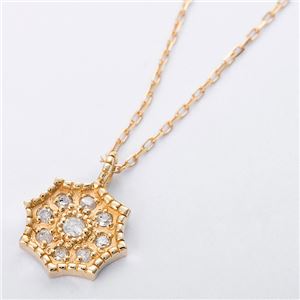 K10イエローゴールド 天然ダイヤモンドペンダント/ネックレス ダイヤ0.06ct アンティーク調フラワーモチーフ