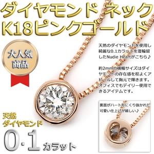 ダイヤモンド ネックレス 一粒 0.1ct K18 ピンクゴールド Nudie Heart(ヌーディーハート) 人気の覆輪留 ペンダント