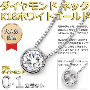 ダイヤモンド ネックレス 一粒 0.1ct K18 ホワイトゴールド ペンダント Nudie Heart(ヌーディーハート) 人気の覆輪留 ペンダント