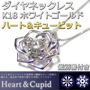ダイヤモンド ネックレス 一粒 0.03ct K18 ホワイトゴールド ハート&キューピット H&C Hカラー SIクラス GOOD 花 フラワー バラ 薔薇 ペンダント 鑑別書付き 限定2点限り