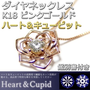 ダイヤモンド ネックレス 一粒 0.03ct K18 ピンクゴールド ハート&キューピット H&C Hカラー SIクラス GOOD 花 フラワー バラ 薔薇 ペンダント 鑑別書付き 限定2点限り