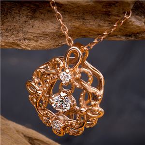 【鑑別書付】ダイヤモンドペンダント/ネックレス 0.05ct K10 ピンクゴールド アラベスク フラワーモチーフ 鑑別書付き