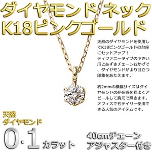 ダイヤモンド ネックレス 一粒 K18 ピンクゴールド 0.1ct ダイヤネックレス シンプル ペンダント