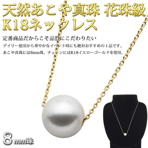 アコヤ真珠 ネックレス パールネックレス K18 イエローゴールド 花珠クラス 8mm 8ミリ珠 40cm 長さ調節可能(アジャスター付き) あこや真珠 ペンダント パール 本真珠