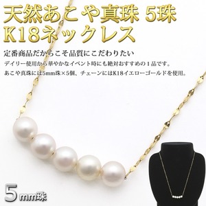 アコヤ真珠 ネックレス パールネックレス K18 イエローゴールド 約5mm 約5ミリ珠 5個 あこや真珠 ペンダント シンプル パール 本真珠