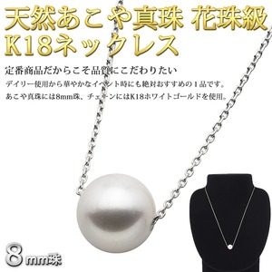 アコヤ真珠 ネックレス パールネックレス K18 ホワイトゴールド 花珠クラス 約8mm 約8ミリ珠 40cm 長さ調節可能(アジャスター付き) あこや真珠 パール 本真珠
