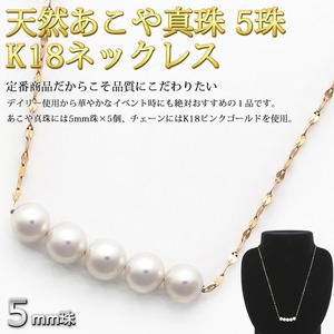 アコヤ真珠 ネックレス パールネックレス K18 ピンクゴールド 約5mm 約5ミリ珠 5個 あこや真珠 ペンダント シンプル パール 本真珠