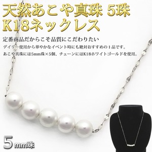 アコヤ真珠 ネックレス パールネックレス K18 ホワイトゴールド 約5mm 約5ミリ珠 5個 あこや真珠 ペンダント シンプル パール 本真珠