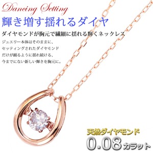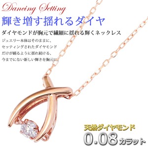 ダイヤモンドペンダント/ネックレス 一粒 K18 ピンクゴールド 0.08ct ダンシングストーン ダイヤモンドスウィングネックレス 揺れるダイヤが輝きを増す☆ リボンモチーフ 揺れる ダイヤ