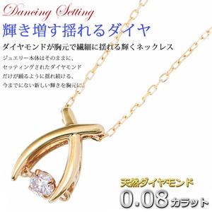ダイヤモンドペンダント/ネックレス 一粒 K18 イエローゴールド 0.08ct ダンシングストーン ダイヤモンドスウィングネックレス 揺れるダイヤが輝きを増す☆ リボンモチーフ 揺れる ダイヤ