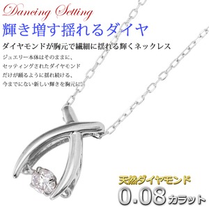 ダイヤモンドペンダント/ネックレス 一粒 K18 ホワイトゴールド 0.08ct ダンシングストーン ダイヤモンドスウィングネックレス 揺れるダイヤが輝きを増す☆ リボンモチーフ 揺れる ダイヤ