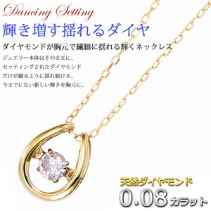 ダイヤモンドペンダント/ネックレス 一粒 K18 イエローゴールド 0.08ct ダンシングストーン ダイヤモンドスウィングネックレス 揺れるダイヤが輝きを増す☆ 馬蹄モチーフ 揺れる ダイヤ
