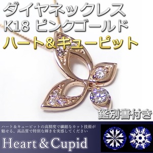 ダイヤモンド ネックレス 0.08ct K18 ピンクゴールド ハート&キューピット H&C Hカラー SIクラス GOOD バタフライ 蝶モチーフ ペンダント 鑑別書付き 限定1点限り