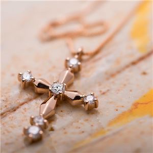【鑑別書付】K18ピンクゴールド 天然ダイヤネックレス ダイヤモンドペンダント/ネックレス0.10ct クロスモチーフ