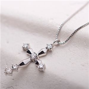 【鑑別書付】K18ホワイトゴールド 天然ダイヤネックレス ダイヤモンドペンダント/ネックレス0.10ct クロスモチーフ