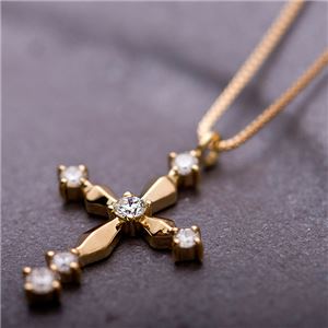 【鑑別書付】K18イエローゴールド 天然ダイヤネックレス ダイヤモンドペンダント/ネックレス0.10ct クロスモチーフ