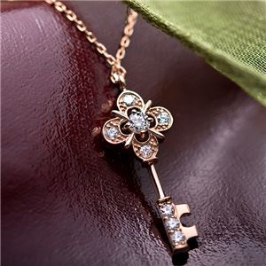 【鑑別書付】K18ピンクゴールド 天然ダイヤネックレス ダイヤモンドペンダント/ネックレス0.11ct キーモチーフ