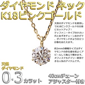 ダイヤモンド ネックレス 一粒 K18 ピンクゴールド 0.3ct ダイヤネックレス シンプル ペンダント