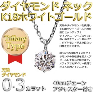 ダイヤモンド ネックレス 一粒 K18 ホワイトゴールド 0.3ct ダイヤネックレス シンプル ペンダント