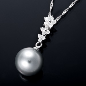 K18WG 南洋黒蝶シルバーグレイ真珠ペンダント