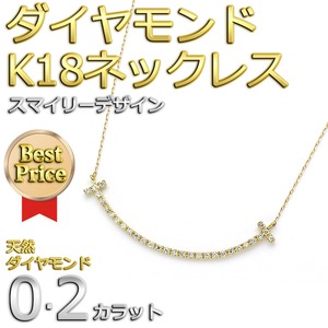 ダイヤモンド ネックレス K18 イエローゴールド 0.2ct スマイリー ダイヤネックレス シンプル ペンダント